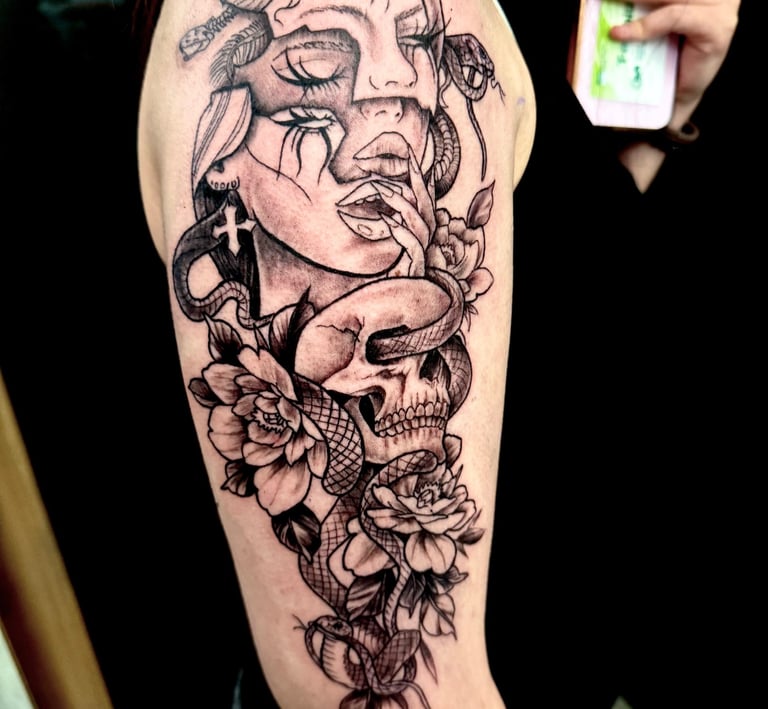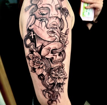 Explora nuestro arte en tatuajes, piercings y micropigmentación.